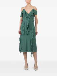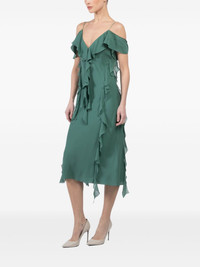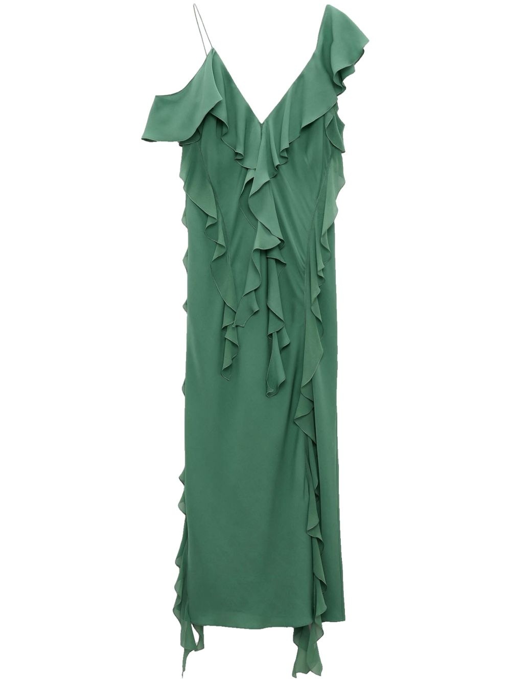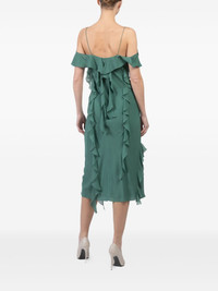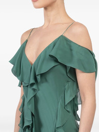 silk dress Highlights - Jade green - Concealed rear zip fastening - Ruffled detailing - V-neck - Off-shoulder Imported Composition Silk 100%