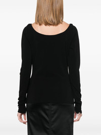 structured V-neck top Highlights - Black - Stretch-jersey - Structured v-neck - Long sleeves - Cuff zips - Partial lining - Straight hem Imported Composition Viscose 75%, Polyamide 20%, Elastane 5% SIZE & FIT Model measurements Height 5 ft 9 in(1.75 m) Bust/Chest 31.88 in(81 cm) Hips 34.64 in(88 cm) Waist 24.01 in(61 cm) Measurement LENGTH 23.62 in(60 cm) FittingInformation Designed for a slim fit that sits just away from the body offering a close yet comfortable fit Made from a midweight stretch fabric, this piece offers elasticity and flexibility when worn