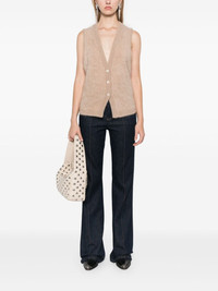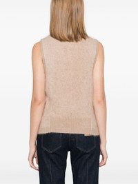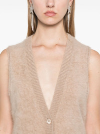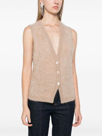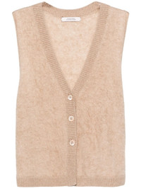 textured cashmere top Highlights - Light brown - Cashmere - Textured finish - Knitted construction - Front button fastening - V-neck - Sleeveless - Straight hem Imported Composition Cashmere 100% SIZE & FIT Model measurements Height 5 ft 9 in(1.75 m) Bust/Chest 31.88 in(81 cm) Hips 34.64 in(88 cm) Waist 24.01 in(61 cm) FittingInformation Designed for a slim fit that sits just away from the body offering a close yet comfortable fit Made with a midweight knit, this piece offers some stretch