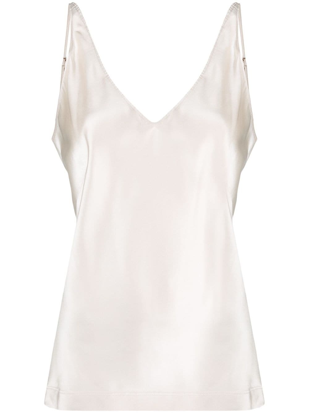 V-neck satin camisole Crafted in silk satin for a dazzling pearlescent finish, this Dorothee Schumacher top has a timeless and versatile sleeveless silhouette. Highlights - White - Stretch-silk - Satin weave - V-neck - Adjustable spaghetti straps - Straight hem Imported Composition Silk 95%, Elastane 5% Body: Silk 95% SIZE & FIT Model measurements Height 5 ft 10 in(1.79 m) Bust/Chest 31.1 in(79 cm) Hips 35.03 in(89 cm) Waist 24.01 in(61 cm) Measurement LENGTH 22.83 in(58 cm) FittingInformation Designed to be unstructured, offering a loose fit throughout The adjustable shoulder straps allow for a preferred fit when worn Made from a lightweight stretch fabric, this piece offers elasticity and flexibility when worn This piece fits true to size – take your usual size Washing instructions Machine Wash