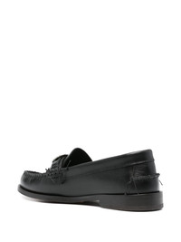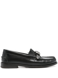 Western Coolness leather loafers black calf leather smooth grain raised seam detail fringe detailing almond toe branded leather insole leather outsole silver-tone hardware buckle-strap fastening slip-on style Imported Composition Lining: Calf Leather 100% Sole: Calf Leather 100% Outer: Calf Leather 100% SIZE & FIT Measurement HEEL 0.78 in(2 cm) Sole height 0.39 in(1 cm)