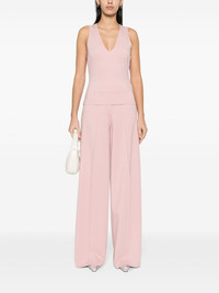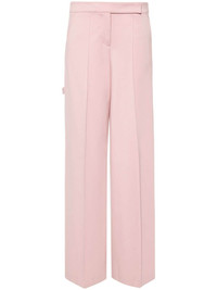 wide-leg trousers Highlights - Rose pink - Jersey texture - Decorative side strap - Seam detailing - Two side inset pockets - Two rear patch pockets - Wide leg - Concealed front button, hook and zip fastening Imported Composition Outer: Viscose 67%, Polyamide 28%, Elastane 5% Lining: Polyester 100% SIZE & FIT Model measurements Height 5 ft 10 in(1.78 m) Bust/Chest 33.07 in(84 cm) Hips 35.82 in(91 cm) Waist 25.98 in(66 cm) Measurement INSIDE LEG 35.03 in(89 cm) HIPS 44.09 in(112 cm) WAIST 33.07 in(84 cm) FittingInformation Designed with a wide-leg cut, these trousers allow for a close fit at the waist and offer a loose and roomy fit over the leg Made from a midweight stretch fabric, this piece offers elasticity and flexibility when worn This piece fits true to size – take your usual size Washing instructions Dry Clean Only