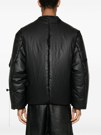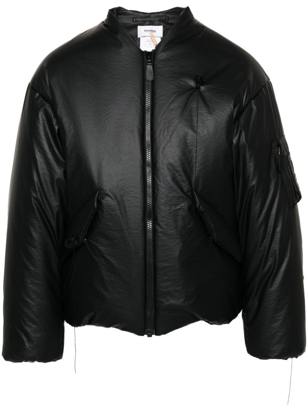 Balloon bomber jacket Highlights - Black - Padded design - No lapels - V-neck - Balloon knots detail - Long sleeves - Sleeve zip pocket - Elasticated cuffs - Two front stud-fastening flap pockets - Full lining - Straight hem - Front zip fastening Imported Composition Lining: Polyester 100% Nylon 75%, Polyurethane 25% SIZE & FIT Model measurements Height 6 ft 2 in(1.87 m) Bust/Chest 38.18 in(97 cm) Hips 36.61 in(93 cm) Waist 29.13 in(74 cm) FittingInformation Designed for a regular fit, allowing for a comfortably loose fit throughout the body The elasticated hem allows for movement and a comfortable fit Made from a padded non-stretch fabric, giving it no natural elasticity This piece fits true to size – take your usual size