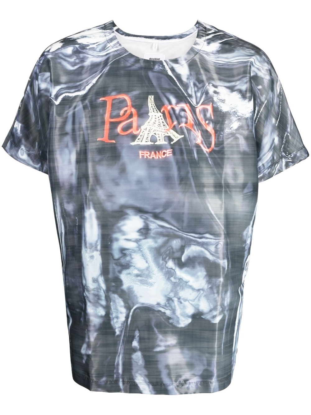 graphic-print cotton T-shirt black/multicolour all-over graphic print crew neck short sleeves straight hem Imported Composition Polyester 73%, Nylon 27% SIZE & FIT Model measurements Height 6 ft 2 in(1.87 m) Bust/Chest 34.25 in(87 cm) Hips 36.22 in(92 cm) Waist 29.52 in(75 cm) Measurement CHEST 52.75 in(134 cm) LENGTH 26.77 in(68 cm) FittingInformation Designed to be unstructured, offering a loose fit throughout Made from a lightweight non-stretch fabric This piece fits true to size – take your usual size Washing instructions Dry Clean Only