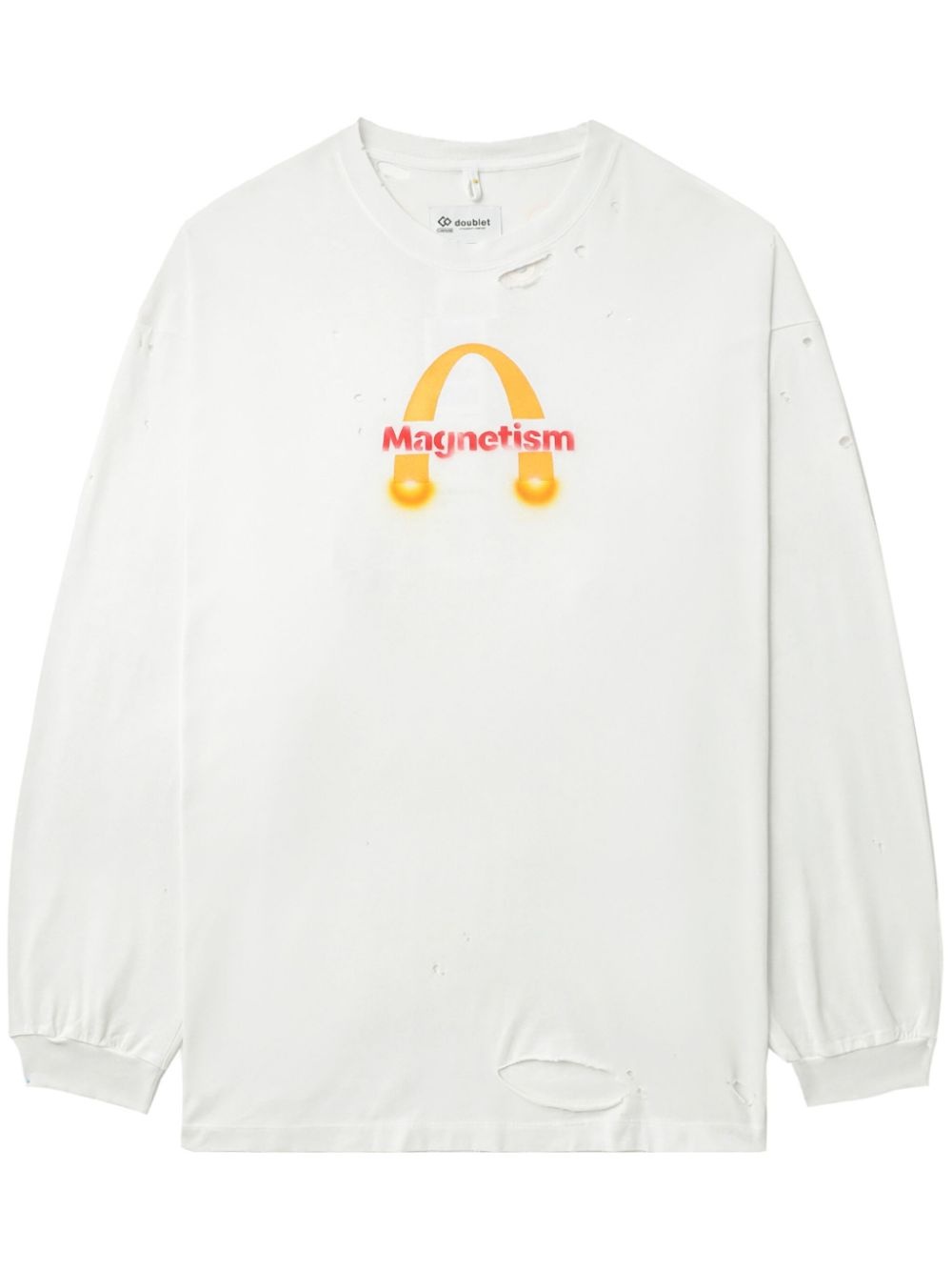 graphic-print T-shirt Highlights - White - Cotton - Jersey texture - Graphic print to the front - Distressed effect - Crew neck - Drop shoulder - Long sleeves - Ribbed cuffs - Straight hem Imported Composition Cotton 100% SIZE & FIT Measurement CHEST 49.6 in(126 cm) SLEEVE LENGTH 24.01 in(61 cm) LENGTH 29.92 in(76 cm) Shoulder Width 24.8 in(63 cm)
