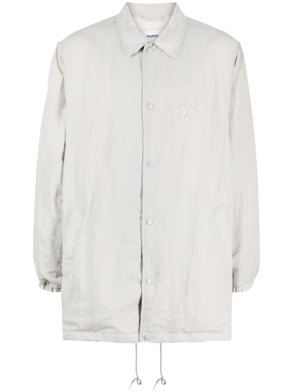logo-embroidered shirt jacket Highlights - Light grey - Embroidered logo at the chest - Classic collar - Long sleeves - Front press-stud fastening - Elasticated cuffs - Drawstring hem Imported Composition Lining: Polyester 100% Polyamide 100% SIZE & FIT Model measurements Height 6 ft 2 in(1.87 m) Bust/Chest 31.49 in(80 cm) Hips 37.79 in(96 cm) Waist 27.95 in(71 cm) FittingInformation Designed to be unstructured, offering a loose fit throughout The internal drawstring at the hem allows for fitted preferences Made from a midweight non-stretch fabric This piece fits true to size – take your usual size Washing instructions Dry Clean Only