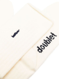 logo-intarsia knitted mittens Highlights - Cream white - Wool blend - Intarsia-knit logo - Stretch-design - Slip-on style Imported Composition Wool 80%, Nylon 20% SIZE & FIT Measurement HEIGHT 15.94 in(40.5 cm) WIDTH 3.54 in(9 cm)