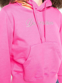 rhinestone-logo detail hoodie fuchsia pink cotton rhinestone embellishment embossed logo to the front drawstring hood long sleeves ribbed trim elasticated cuffs elasticated hem front pouch pocket Imported Composition Cotton 100% SIZE & FIT Model measurements Height 5 ft 10 in(1.78 m) Bust/Chest 33.46 in(85 cm) Hips 35.43 in(90 cm) Waist 24.4 in(62 cm) Measurement SLEEVE LENGTH 18.11 in(46 cm) Shoulder Width 14.96 in(38 cm) LENGTH 19.68 in(50 cm) BUST 34.64 in(88 cm) Washing instructions Hand Wash