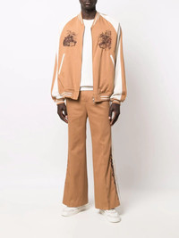 side-trim flared trousers brown cotton side stripe detailing belt loops concealed front fastening two rear welt pockets flared Imported Composition Outer: Cotton 100% Lining: Cupro 100% SIZE & FIT Model measurements Height 6 ft 2 in(1.87 m) Bust/Chest 36.41 in(92.5 cm) Hips 37 in(94 cm) Waist 29.52 in(75 cm) FittingInformation This piece fits true to size. We recommend you get your regular size Designed for a slim fit at the waist and loose over the leg Made with a mid-weight non-stretch fabric Washing instructions Dry Clean Only