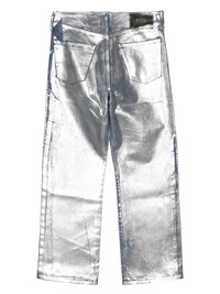 Silver foil-coated jeans Highlights - Belt loops - Frayed edge at waistband - Five-pocket styling - Button-fly - Leather logo patch at back waistband - Logo flag at back - Logo-engraved antiqued silver-tone hardware Imported Composition Cotton 67%, Polyester 22%, Rayon 11%