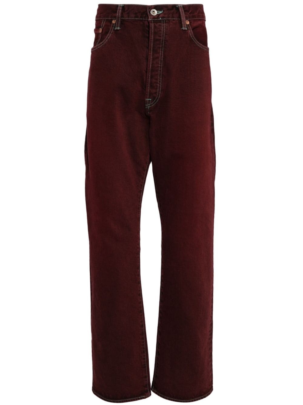 straight-leg jeans Highlights - Wine red - Cotton blend - Denim - Contrast stitching - Mid-rise - Belt loops - Concealed fly and button fastening - Classic five pockets - Straight leg Imported Composition Cotton 88%, Rayon 12%