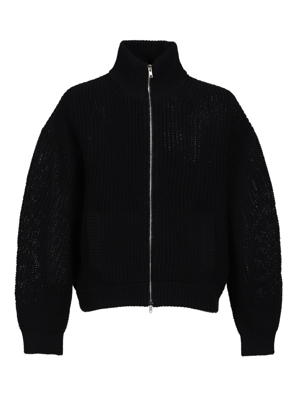 zip-up ribbed jacket Highlights - Black - Ribbed knit - Zip fastening - High neck - Dropped shoulders - Stitch detail Imported Composition Cotton 54%, Polyester 46%