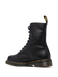 490 virginia leather boots black leather signature yellow stitching round toe front lace-up fastening logo pull-tab at the heel flat rubber sole Imported Composition Leather 100% SIZE & FIT Measurement HEEL 1.77 in(4.5 cm) HEIGHT 7.48 in(19 cm) Sole height 1.18 in(3 cm)