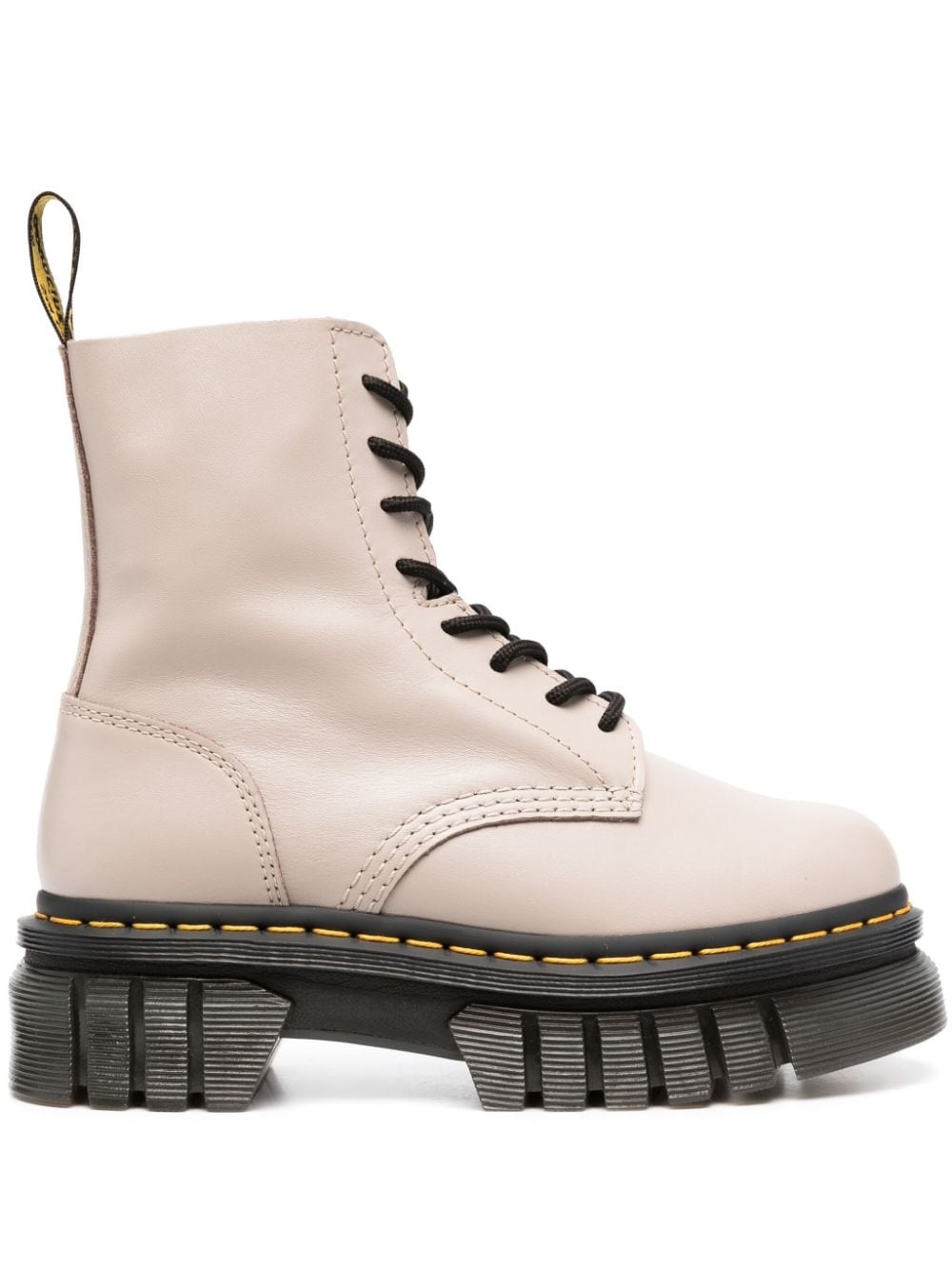 Audrick 8-Eyeye Lux leather ankle boots Highlights - Light beige - Calf leather - Logo pull-tab at the heel - Round toe - Front lace-up fastening - Ridged rubber sole Imported Composition Leather 100% SIZE & FIT Measurement HEEL 1.77 in(4.5 cm) HEIGHT 6.29 in(16 cm) Sole height 1.37 in(3.5 cm)