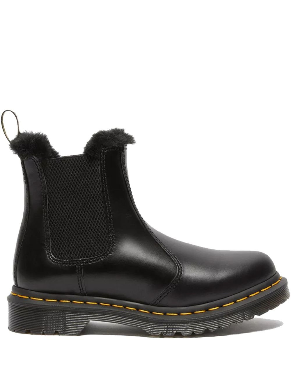 elasticated-sided boots Highlights - Black - Faux-fur trim - Elasticated side panels - Round toe - Rubber sole Imported Composition Outer: Leather 70%, Elastane 30% Lining: Artificial Fur 90%, Fabric 10% Sole: PVC 100%