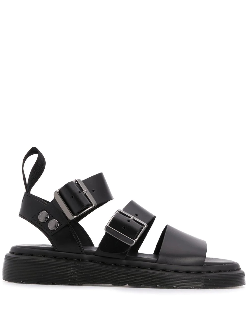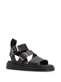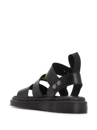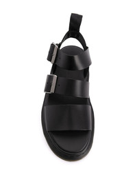 Gryphon strap sandals Black leather Gryphon strap sandals from Dr. Martens featuring an open toe, multiple front straps, a side buckle fastening, a pull tab at the rear and a low heel. Imported Composition Sole: PVC 100% Outer: Calf Leather 100% Lining: Calf Leather 100%