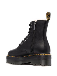 Jadon platform combat botos black leather contrast stitching round toe front lace-up fastening side zip fastening branded insole chunky rubber sole Imported Composition Leather 100% SIZE & FIT Measurement Platform 1.77 in(4.5 cm) HEEL 2.16 in(5.5 cm) HEIGHT 5.9 in(15 cm)
