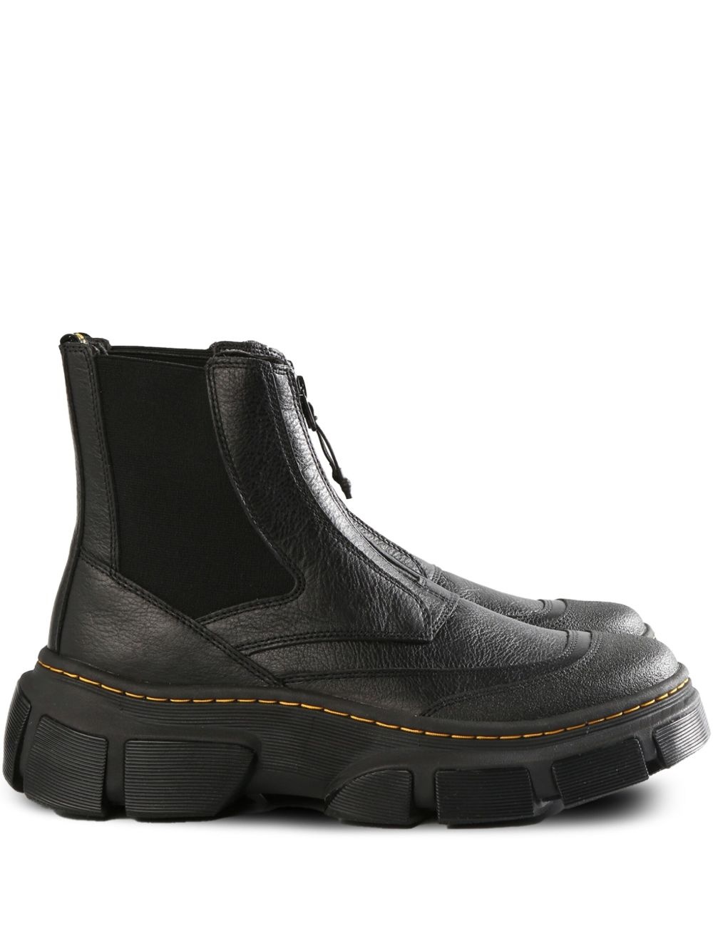 leather boots Highlights - Black - Front zip fastening - Chunky rubber sole - Elasticated side panels - Branded insole Made in United Kingdom Composition Lining: Leather 100% Outer: Grained Leather 100% Sole: PVC 100%, Polyethylene vinyl acetate (PEVA) 100%