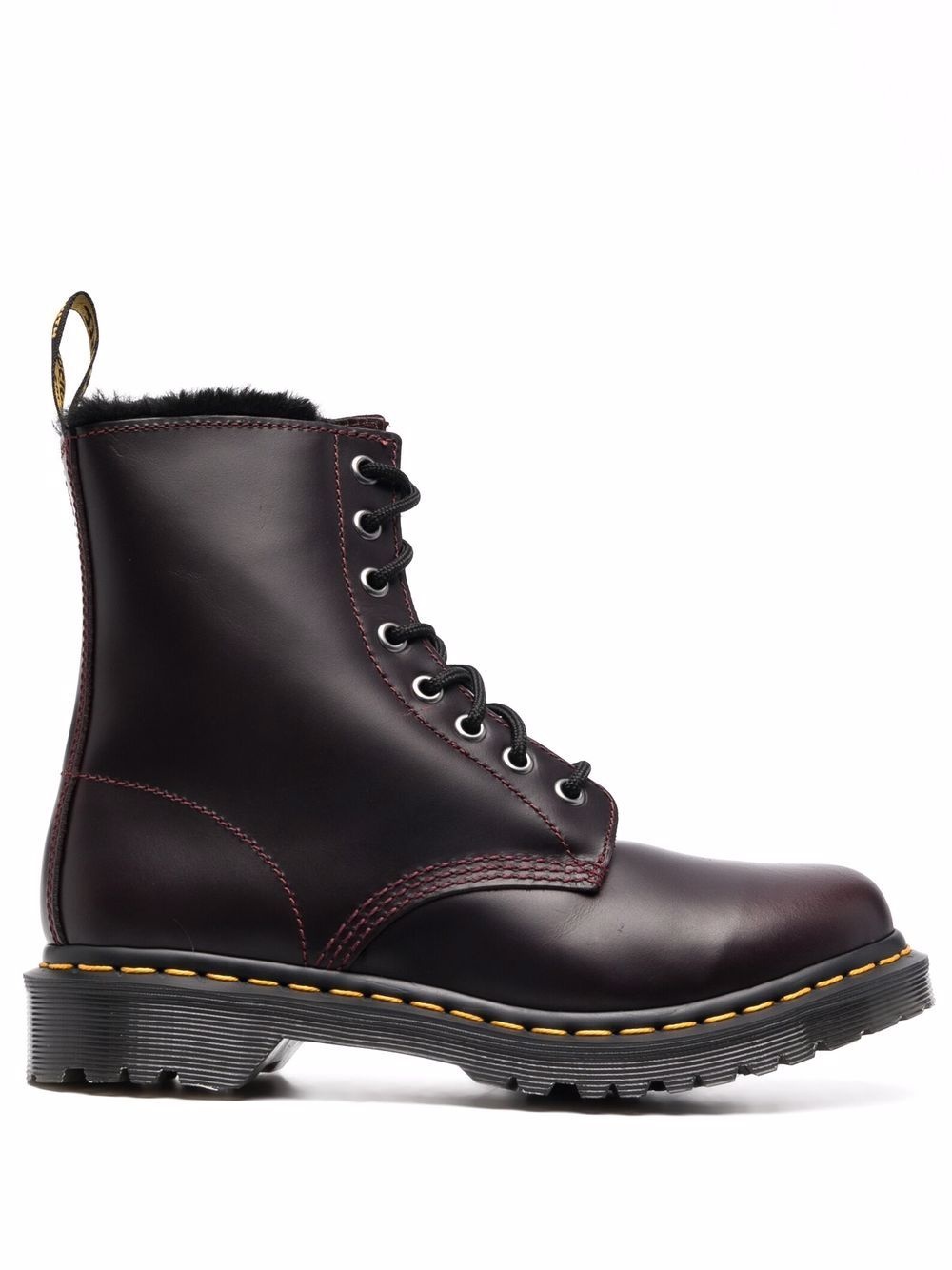 Serena 1460 leather boots oxblood red leather ankle-length faux-fur detailing contrast stitching round toe front lace-up fastening logo pull-tab at the heel flat rubber sole Made in Italy Composition Leather 100% SIZE & FIT Measurement HEEL 1.57 in(4 cm) HEIGHT 6.29 in(16 cm)