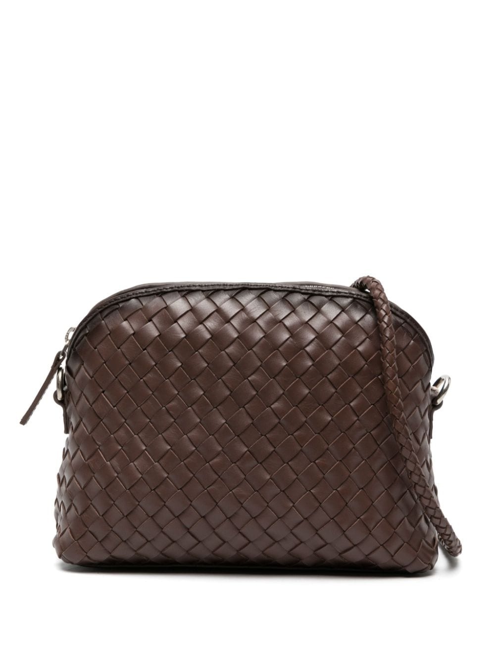 Chunky Fellini leather bag Constructed using the brand's signature leather weaving technique, this crossbody bag by DRAGON DIFFUSION is rendered in a cognac-brown hue for AW23. Highlights - Dark brown - Calf leather - Smooth grain - Interwoven design - Silver-tone hardware - Internal logo pendant - Internal logo patch - Top zip fastening - Detachable shoulder strap - Main compartment - Internal slip pocket - Canvas lining Imported Composition Outer: Calf Leather 100% SIZE & FIT Model measurements Height 5 ft 11 in(1.8 m) Bust/Chest 30.7 in(78 cm) Hips 35.03 in(89 cm) Waist 24.4 in(62 cm) Measurement DEPTH 3.14 in(8 cm) HEIGHT 5.9 in(15 cm) STRAP 20.47 in(52 cm) WIDTH 8.26 in(21 cm)