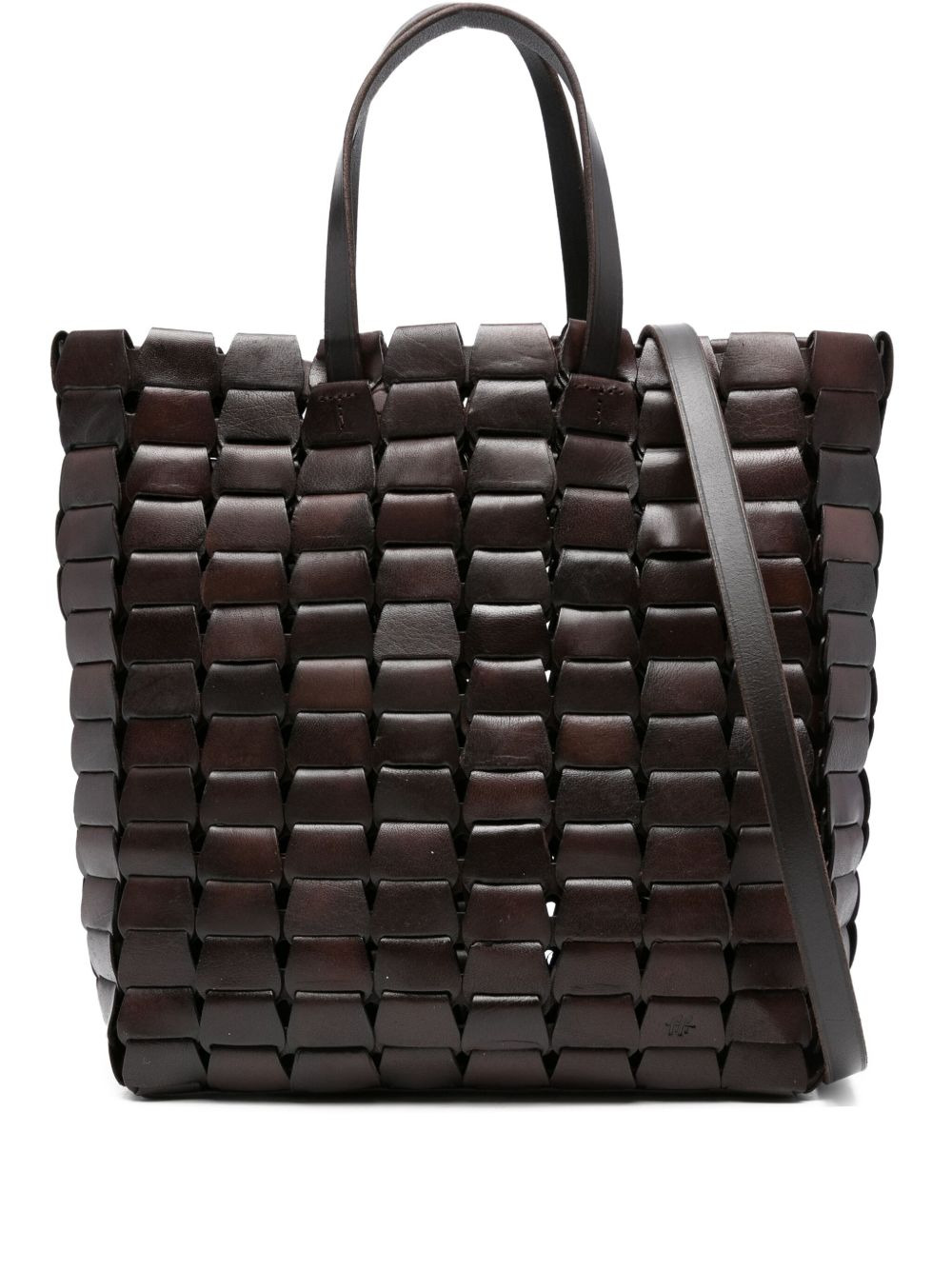 leather woven tote bag Highlights - Dark brown - Leather - Woven design - Two top handles - Detachable shoulder strap - Scalloped edges Imported Composition Outer: Leather 100% SIZE & FIT Measurement DEPTH 3.93 in(10 cm) HEIGHT 9.84 in(25 cm) WIDTH 9.84 in(25 cm) HANDLE 4.72 in(12 cm)