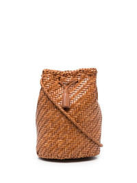 Pompom Double Jump woven leather bucket bag Tan