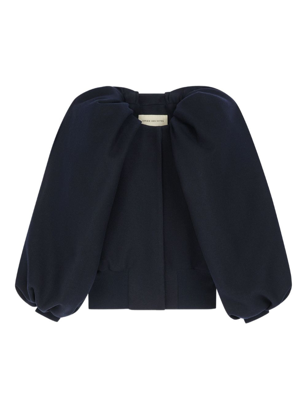 balloon-sleeve jacket Highlights - Navy blue - Balloon sleeves - Gathered neckline - Button fastening Imported Composition Wool 70%, Nylon 30% Washing instructions Read Manufacturer Guidelines