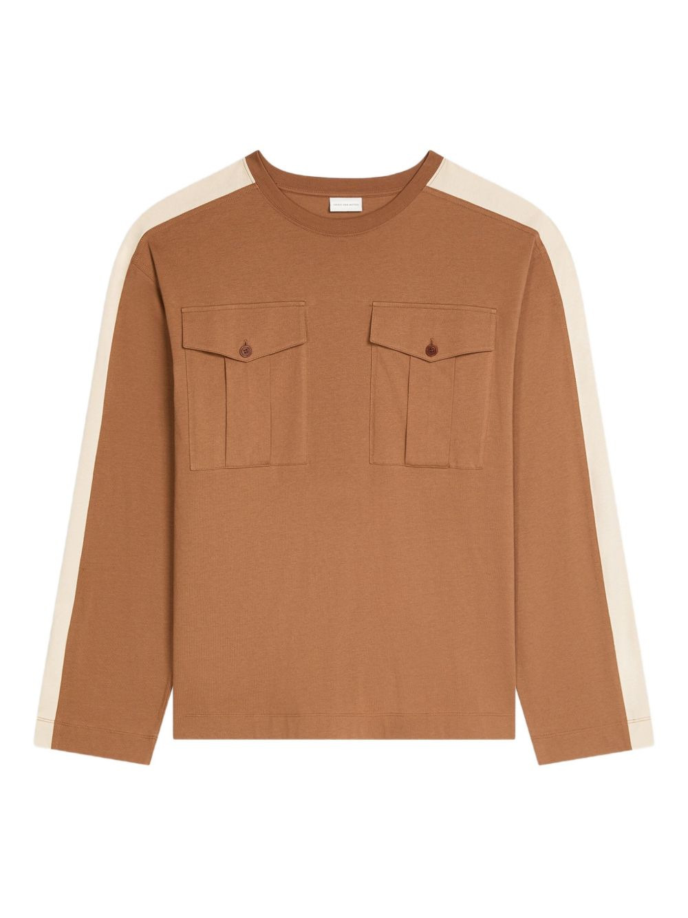 cotton long sleeve T-shirt Highlights - Brown - Crew neck - Long sleeves - Two flap chest pockets - Straight hem Imported Composition Cotton 100%