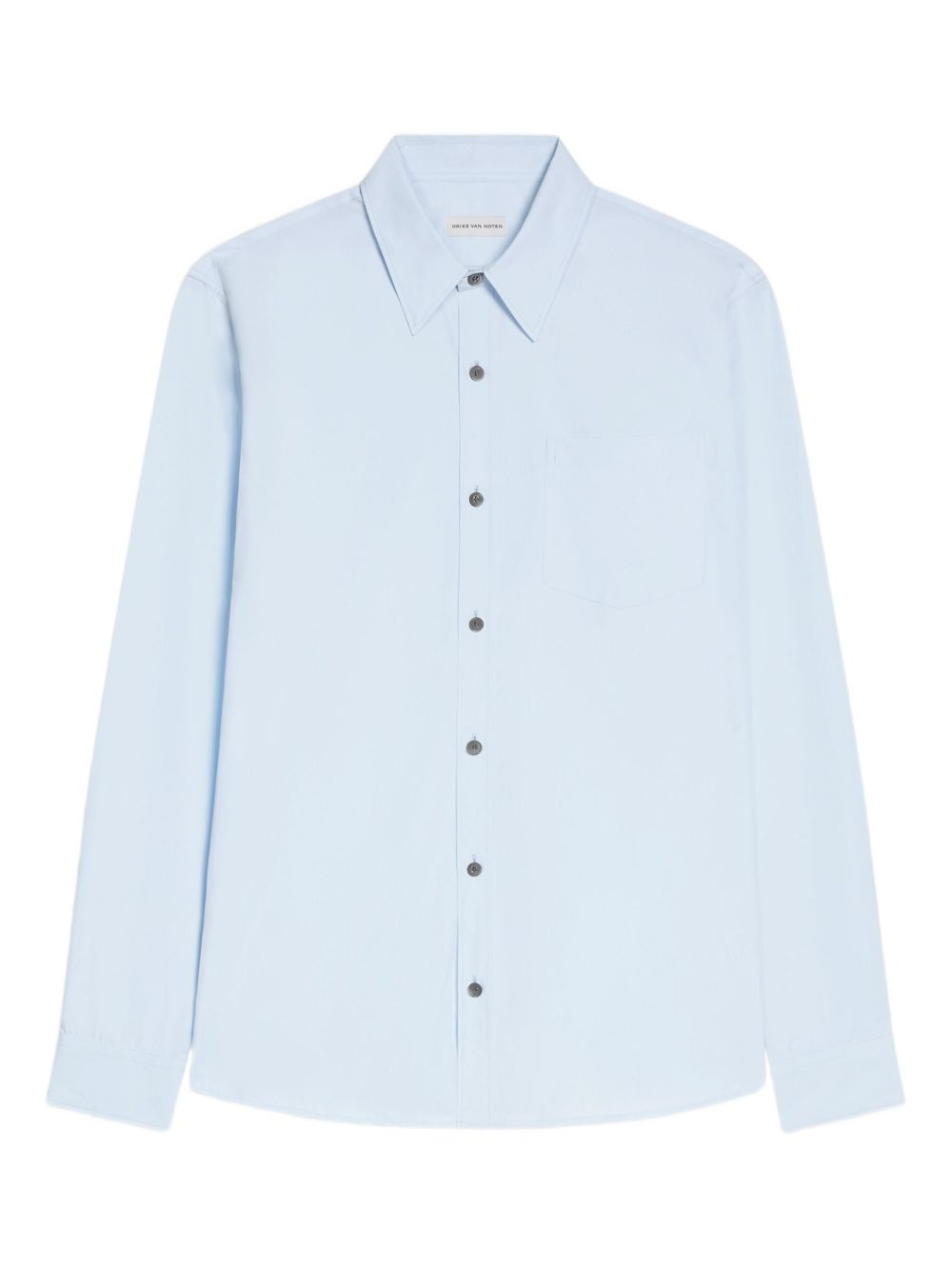 cotton poplin shirt Highlights - Light blue - Cotton poplin - Button fastening - Long sleeves - Classic collar Imported Composition Cotton 100% Washing instructions Read Manufacturer Guidelines