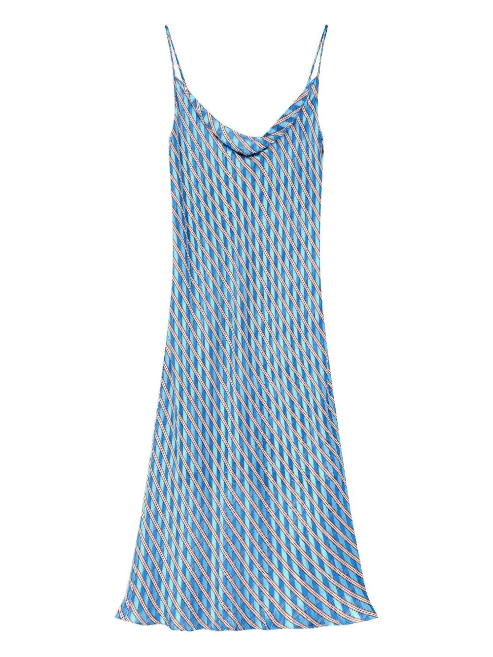 cowl-neck striped slip dress Highlights - Turquoise - Striped - Cowl neck - Devore finish - Cami straps - Slip-on style Imported Composition Viscose 60%, Silk 40% Washing instructions Read Manufacturer Guidelines