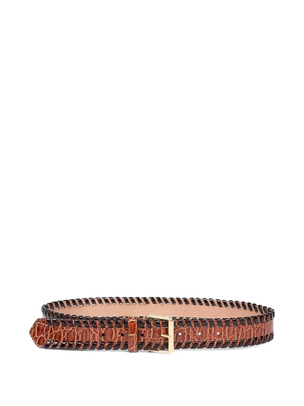 crocodile-embossed leather belt Highlights - Brown - Crocodile embossing - Whipstitch trim - Gold-tone buckle - Leather - Rectangular buckle Made In Italy Composition Leather 100% Washing instructions Read Manufacturer Guidelines