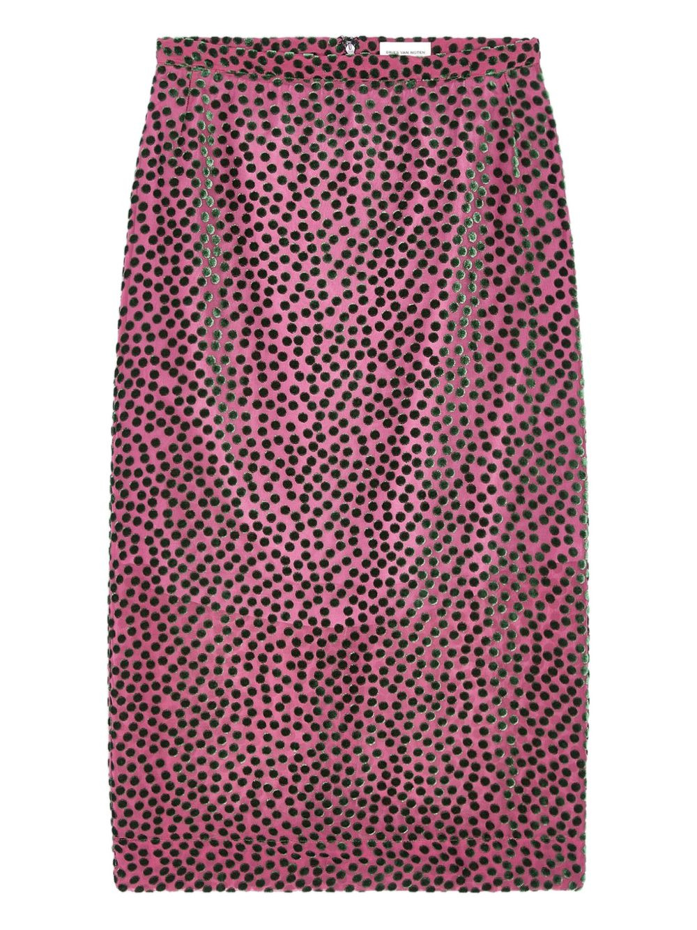 devore polka-dot midi skirt Highlights - Dark pink - Polka dot pattern - Midi length - Centre back vent Imported Composition Viscose 67%, Silk 33% Washing instructions Read Manufacturer Guidelines
