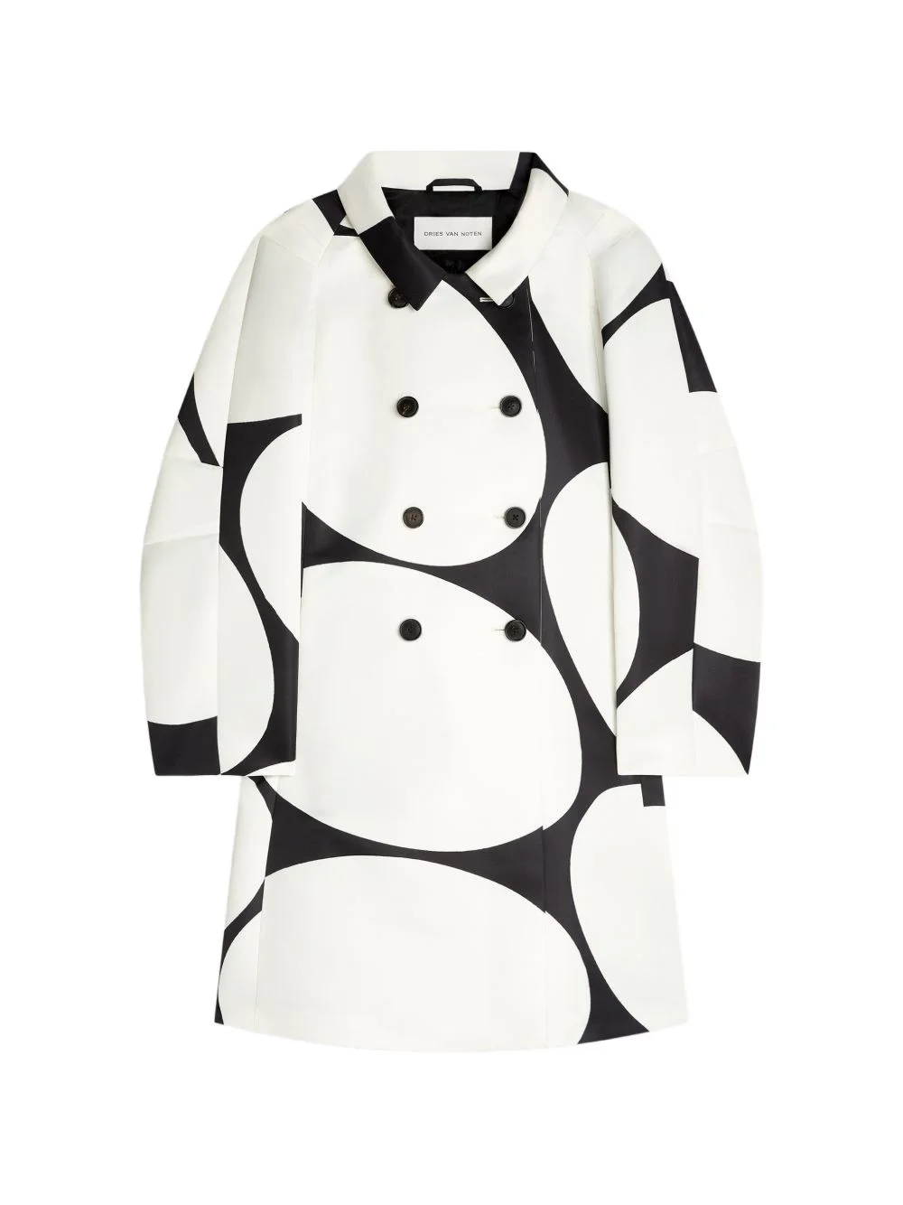 double-breasted printed coat Highlights - Black - Graphic pattern - Double-breasted - Button fastening - Notched lapels - Long sleeves Imported Composition Polyester 100% Washing instructions Read Manufacturer Guidelines