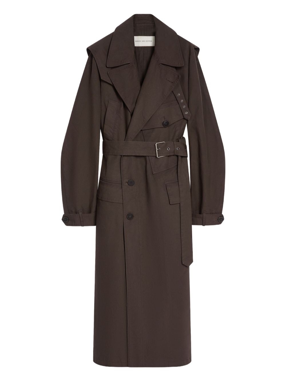double-breasted trench coat Highlights - Brown - Front button fastening - Detachable and adjustable waist belt - Long sleeves - Buttoned cuffs - Epaulettes - Multiple front pockets Imported Composition Cotton 100% Washing instructions Dry Clean Only