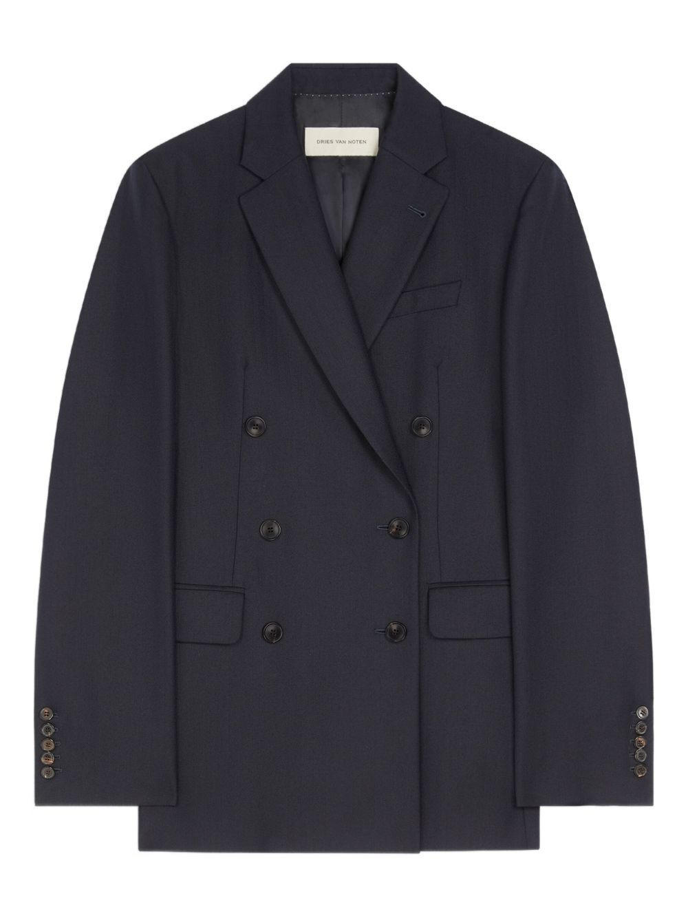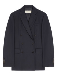 double-breasted wool blazer Highlights - Navy blue - Double-breasted closure - Peak lapels - Long sleeves - Buttoned cuffs - Straight hemline Imported Composition Wool 100% Washing instructions Read Manufacturer Guidelines