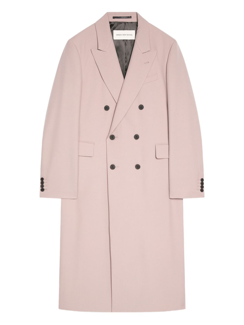 double-breasted wool coat Highlights - Light pink - Double-breasted button closure - Peak lapels - Long sleeves - Buttoned cuffs - Straight hemline Imported Composition Lining: Cupro 60%, Cotton 40% Outer: Wool 100% Washing instructions Read Manufacturer Guidelines