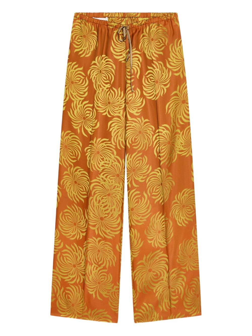 elasticated floral trousers Highlights - Orange - Floral print - Elasticated waistband - Straight hem Imported Composition Acetate 52%, Viscose 48% Washing instructions Read Manufacturer Guidelines