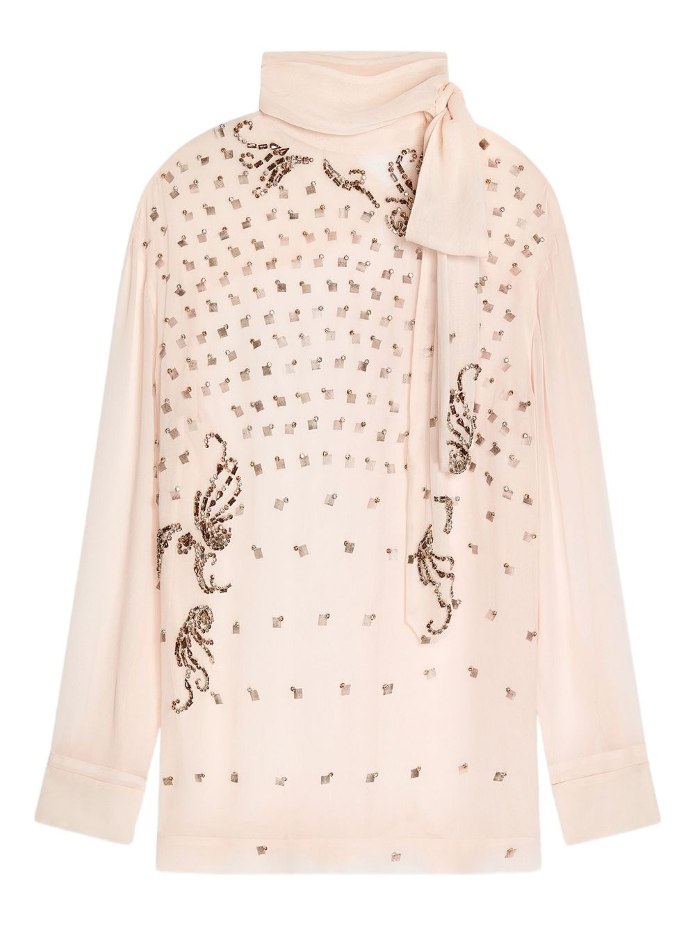 embellished tie-neck blouse Highlights - Blush pink - Tie neck - Embellished details - Long sleeves - High neck Imported Composition Viscose 100% Washing instructions Read Manufacturer Guidelines