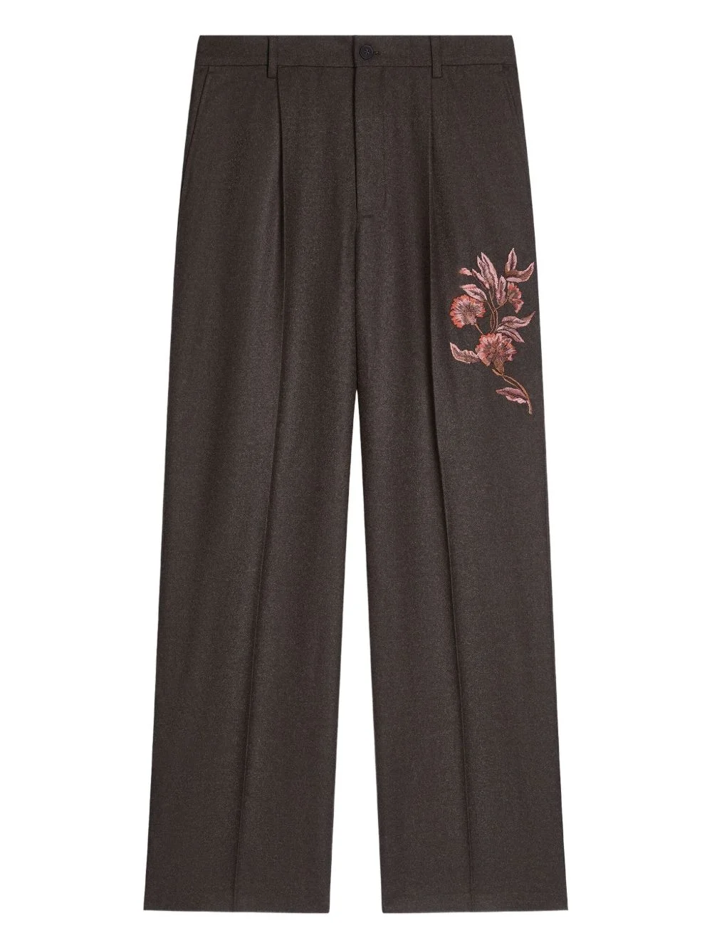 floral-embroidered trousers Highlights - Dark brown - Wool - Dart detailing - Side pockets - Floral embroidery Imported Composition Wool 100% Washing instructions Read Manufacturer Guidelines