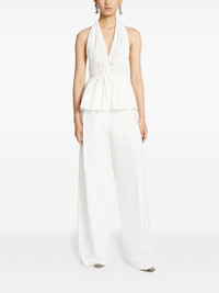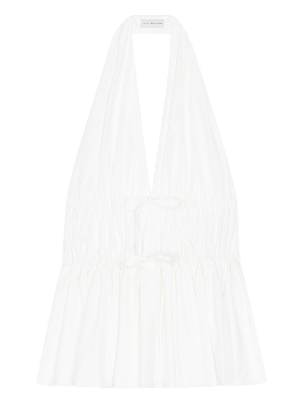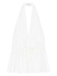 gathered-detail halter top Highlights - White - Halter neckline - Gathered bodice - Ruffle detailing - Peplum hem - Adjustable straps Imported Composition Polyester 58%, Cotton 42%