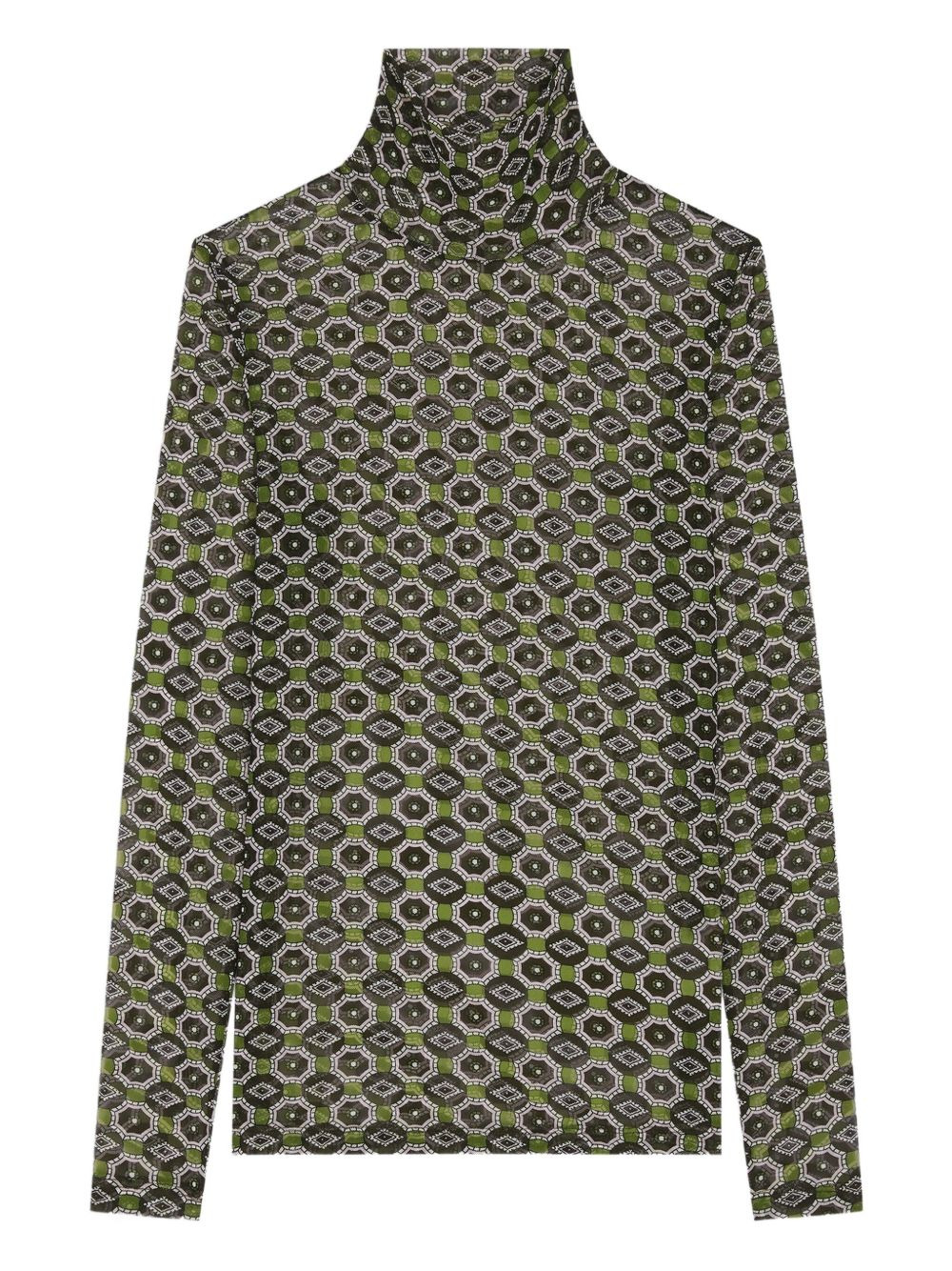geometric-pattern turtleneck tee Highlights - Green - Turtleneck - Long sleeves - Geometric pattern Imported Composition Nylon 94%, Elastane 6% Washing instructions Read Manufacturer Guidelines
