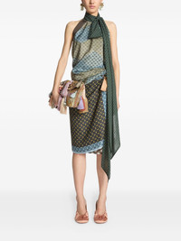 halter-neck geometric-pattern top Highlights - Green - Silk blend - Halterneck - Draped detail - Asymmetrical hem Imported Composition Silk 98%, Elastane 2% Washing instructions Read Manufacturer Guidelines