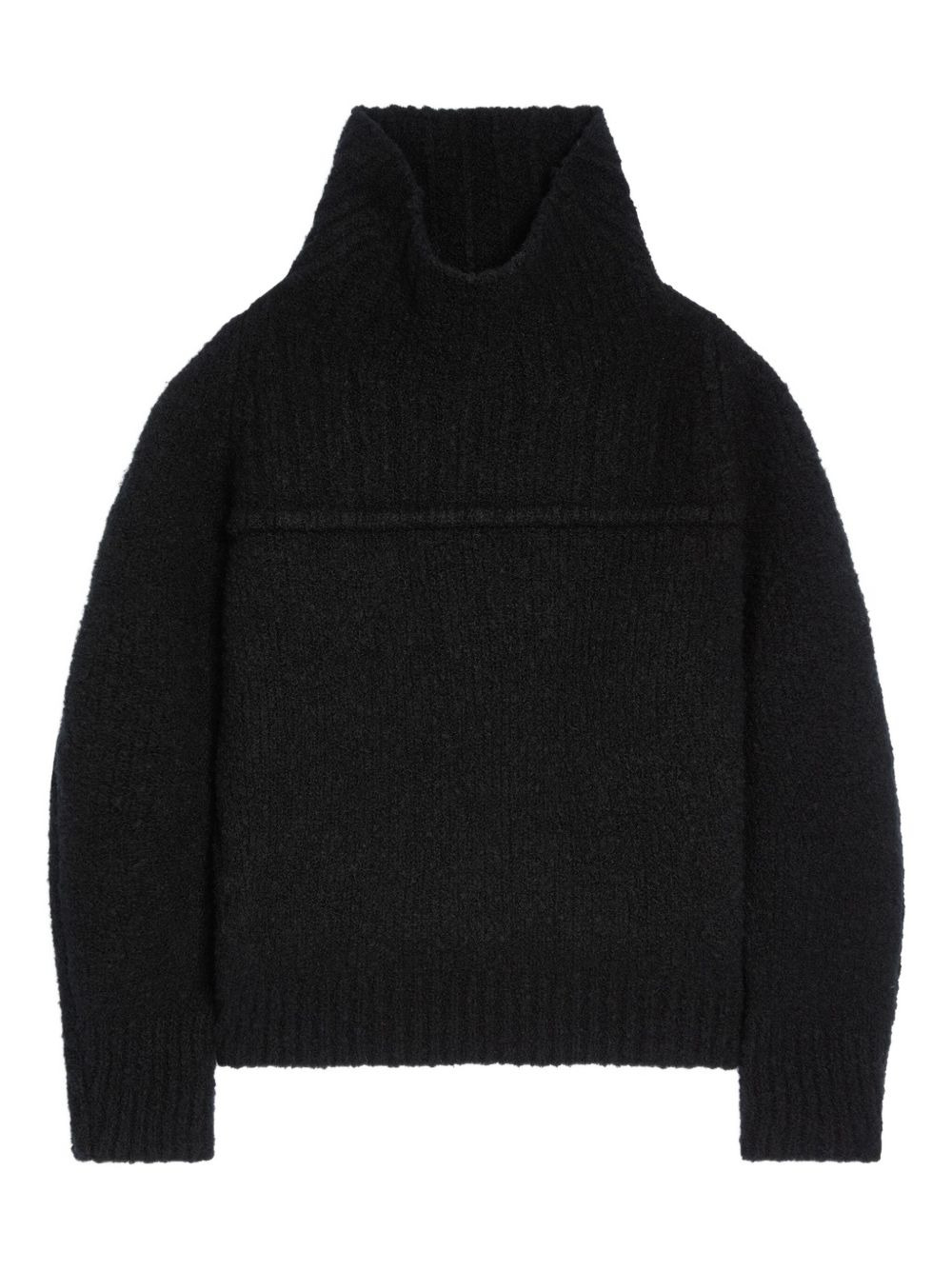 high-neck wool sweater Highlights - Black - High-neck - Ribbed texture - Dropped shoulders - Voluminous sleeves - Straight hem Imported Composition Wool 100% Washing instructions Read Manufacturer Guidelines