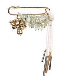 large embellished safety-pin brooch Highlights - Gold-tone - Jade embellishments - Brass beads - Off-white leather tassel - Safety-pin clasp - Normal everyday use and external agents may reduce the lustre of gemstones and gold surfaces. to maintain, use specific, non-abrasive products specially meant for cleaning jewellery. Made in Italy