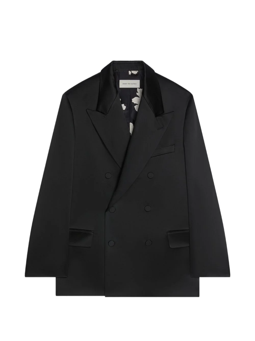 oversized double-breasted blazer Highlights - Black - Oversized fit - Double-breasted - Floral print lining - Peak lapels - Flap pockets Imported Composition Cotton 57%, Recycled Polyester 50%, Acetate 43% Washing instructions Read Manufacturer Guidelines