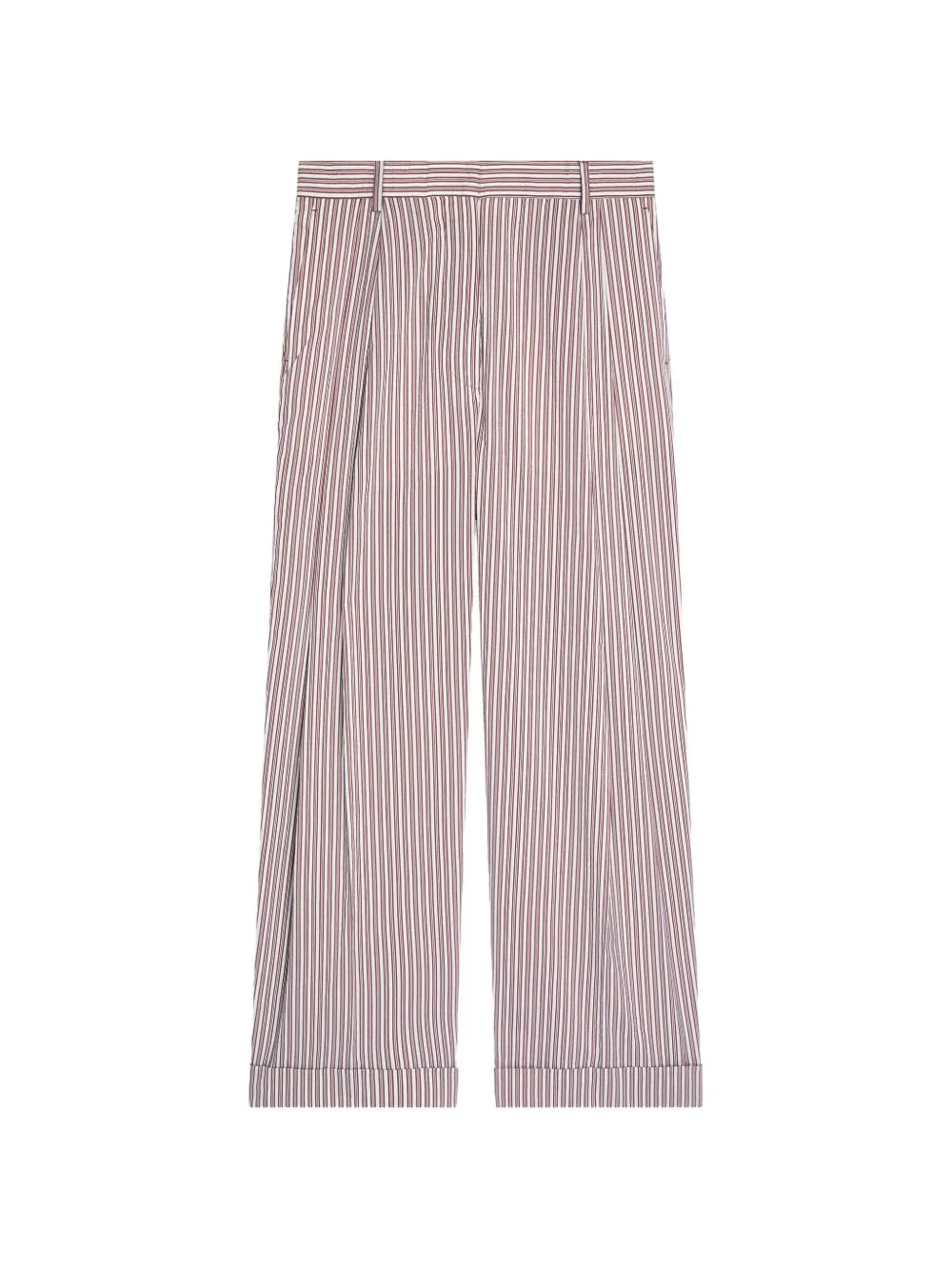 pleated striped trousers Highlights - Brown - Striped - Pleats - Wide leg - Turn-up hem Imported Composition Cotton 80%, Silk 20% Washing instructions Read Manufacturer Guidelines