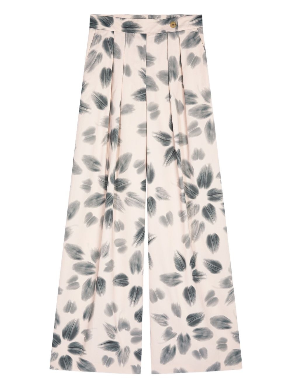 pleated wide-leg trousers Highlights - Pale pink - Leaf print - Pleat detailing - High waist - Front button closure - Tailored aesthetic Imported Composition Viscose 55%, Cotton 45%