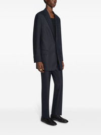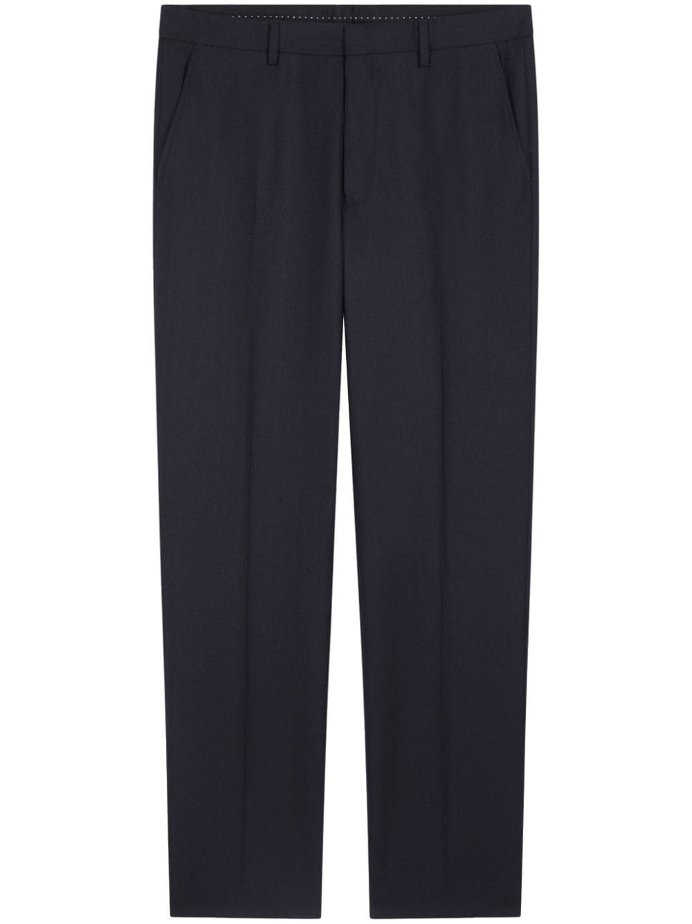 pressed-crease tapered trousers Highlights - Navy blue - Wool - Pressed crease - Belt loops - Concealed front fastening - Two side slit pockets - Two rear jetted pockets - Tapered leg Imported Composition Wool 100%