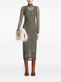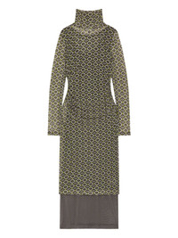 printed mesh turtleneck dress Highlights - Dark green - Geometric print - Turtleneck - Long sleeves - Fitted bodice Imported Composition Nylon 94%, Elastane 6% Washing instructions Read Manufacturer Guidelines