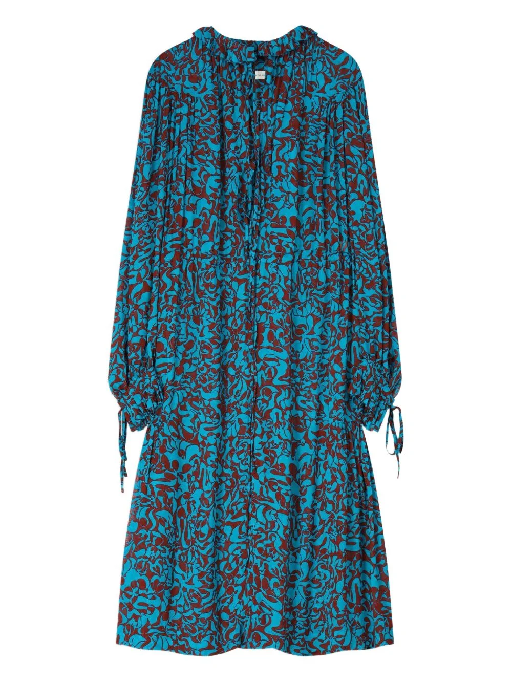 printed midi dress Highlights - Turquoise - All-over print - Tie detail - Long sleeves - Tiered skirt Imported Composition Viscose 100% Washing instructions Read Manufacturer Guidelines